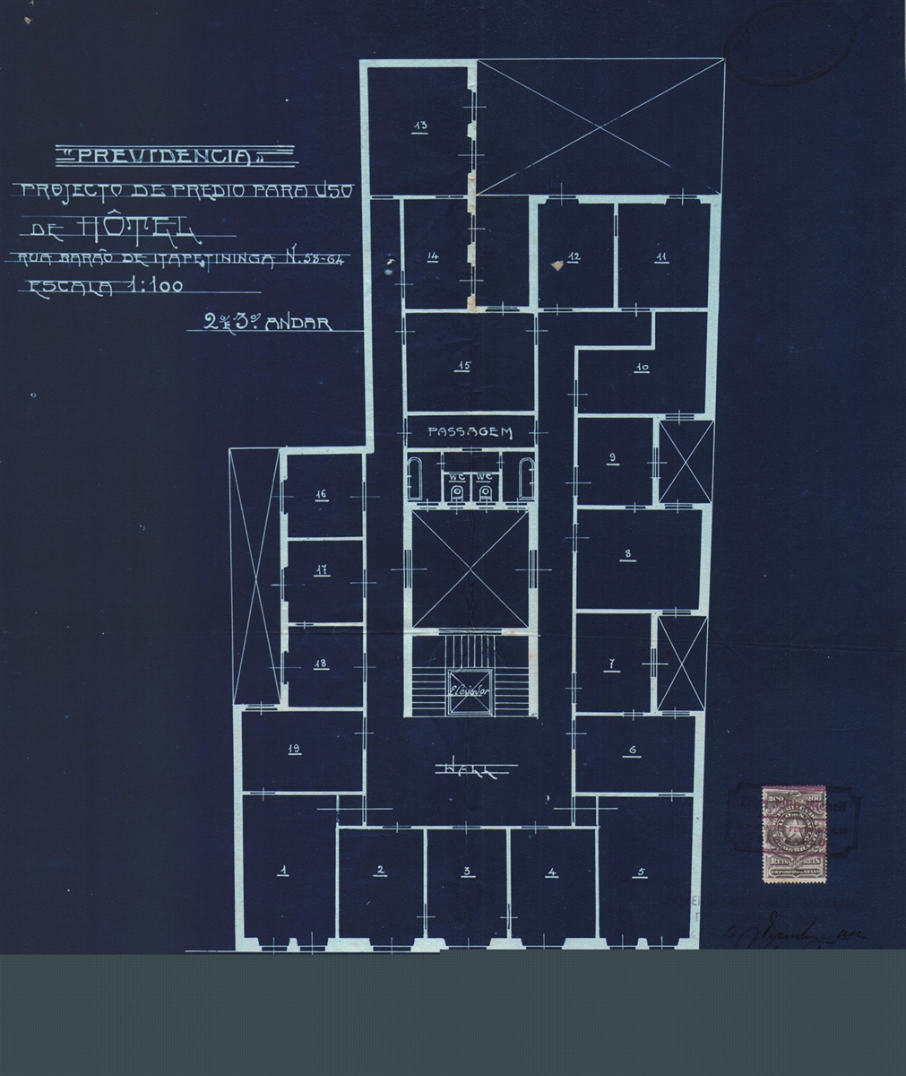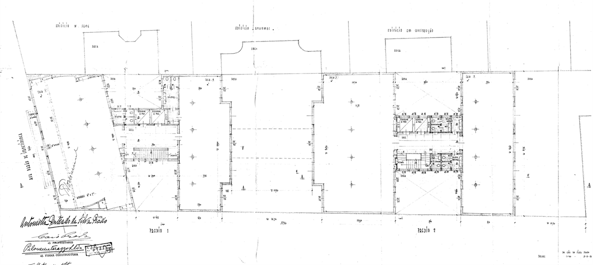 Figura 6 – Projeto de edifício de escritórios para os Srs. Caio e Antonietta da Silva Prado – arq. Jacques Pilon, notar a concordância dos pátios de iluminação e ventilação fonte: IPHAN/SP