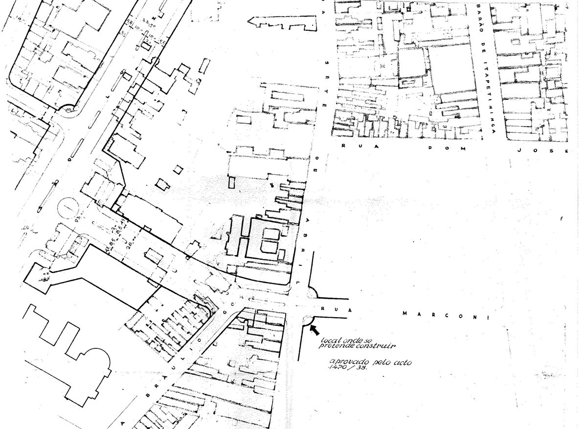 Assim, em lugar de um único edifício ou dois, com as faces principais voltadas para os logradouros públicos, a abertura da Rua Marconi permitiu parcelar a área sendo obtidos 14 lotes de menores dimensões, porém com grandes frentes voltadas para a via pública.