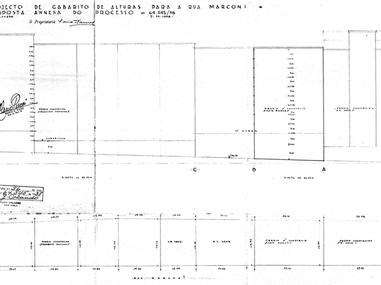 Figura 2 – “Projeto de Gabarito de Alturas para a Rua Marconi” – desenho associado a projeto de Jacques Pilon – Fonte: IPHAN, levantamento de edifícios modernos no Centro Histórico de São Paulo